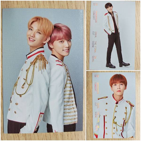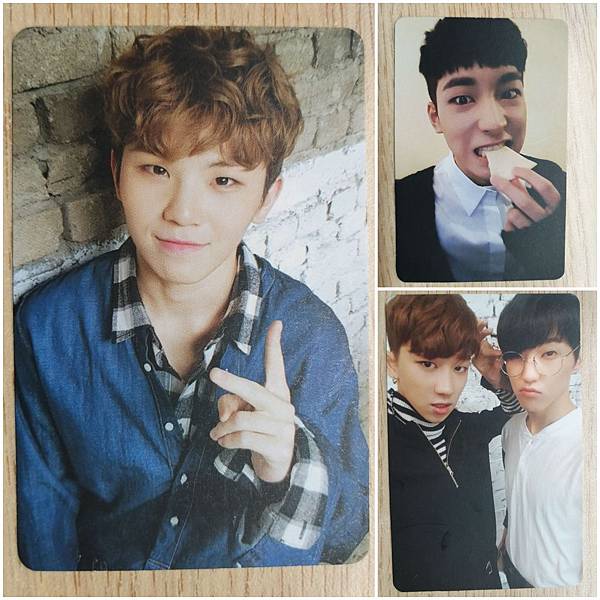除此之外還有三張閃卡,因為很難拍就放棄。分別是F版圓佑Dino和M版DK。M版圓佑做的很好,兩個角度都會一直看著你,推薦圓飯入手(欸)。